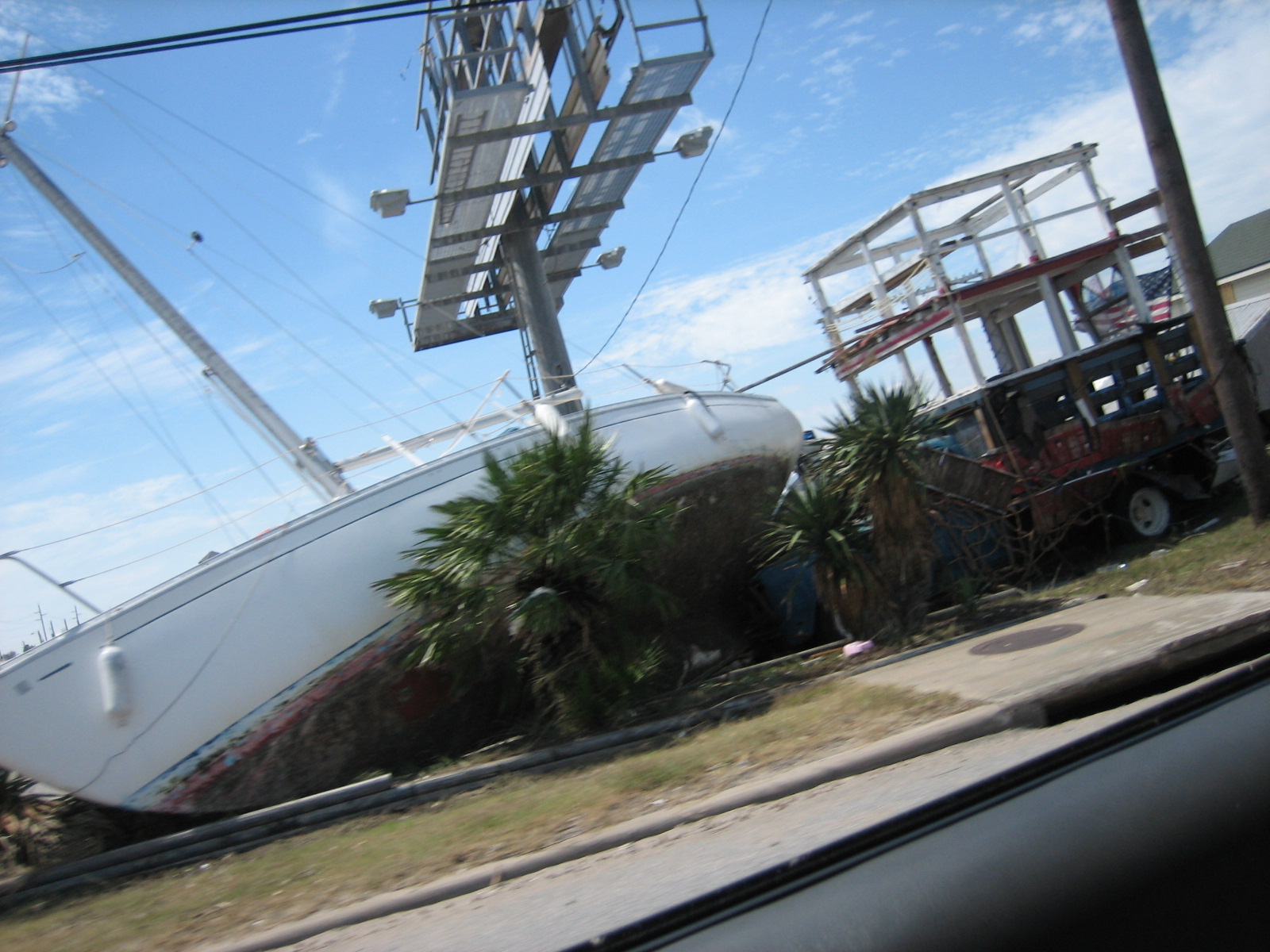 Not an unusual sight all over the area, boats are littered on land and even blocked the interstate.